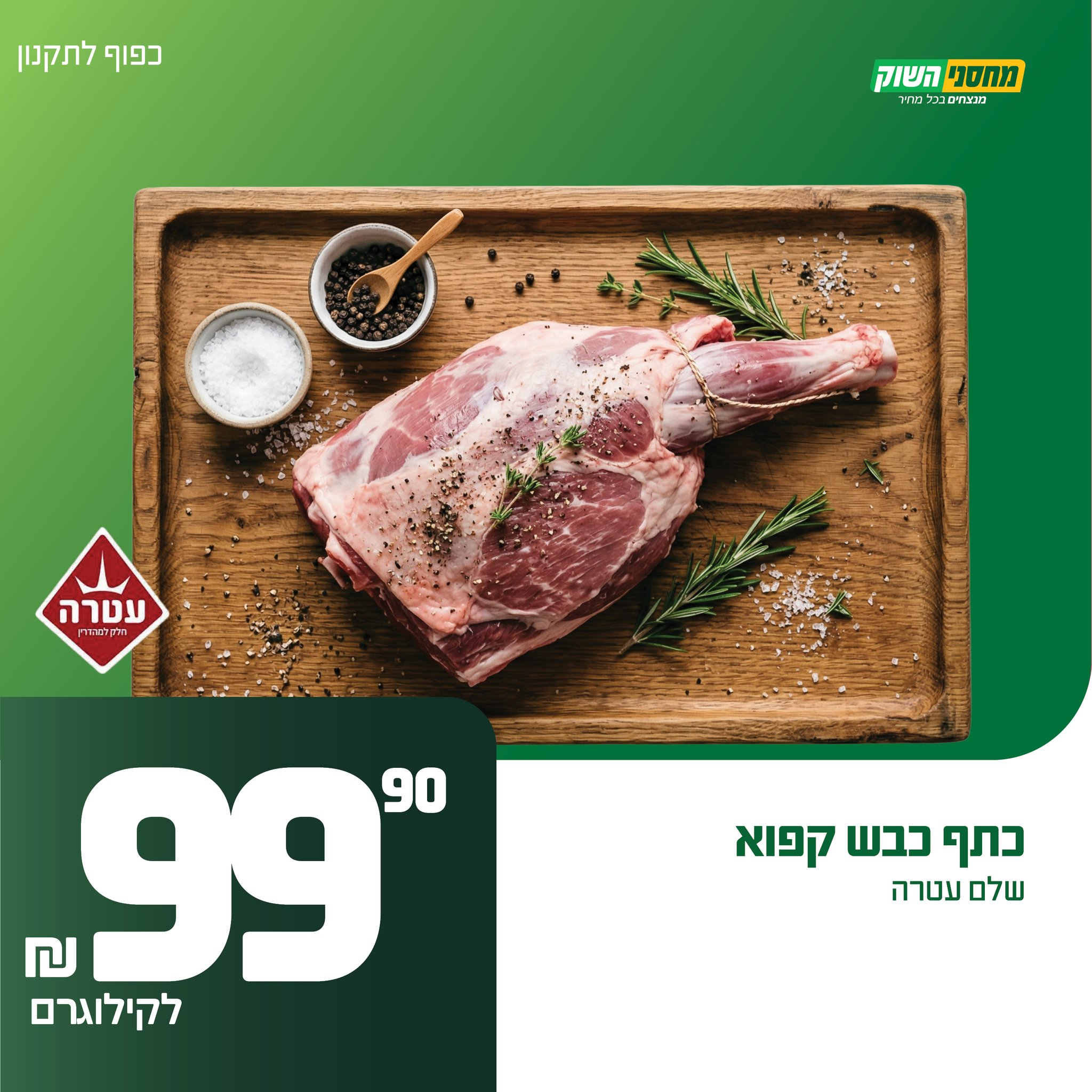 בתוקף בין התאריכים -10-27.03.2026. המוקדם מבניהם | בקנייה מעל 100₪ לא כולל הפריטים שבמבצע | מוגבל מנה / 2 יחידות / 2 ק"ג ללקוח | המבצעים בכפוף לתקנון >> https://lp6.me/LZljm