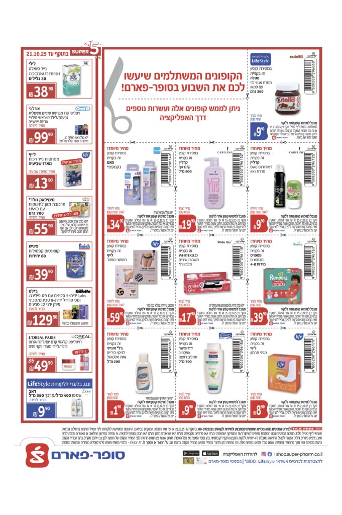 בתוקף עד 21.9.25 או עד גמר המלאי, המוקדם מביניהם. בהתאם לתנאים המפורטים. באחריות סופר פארם בלבד. ט.ל.ח. מתוך פרסום בעיתונות.