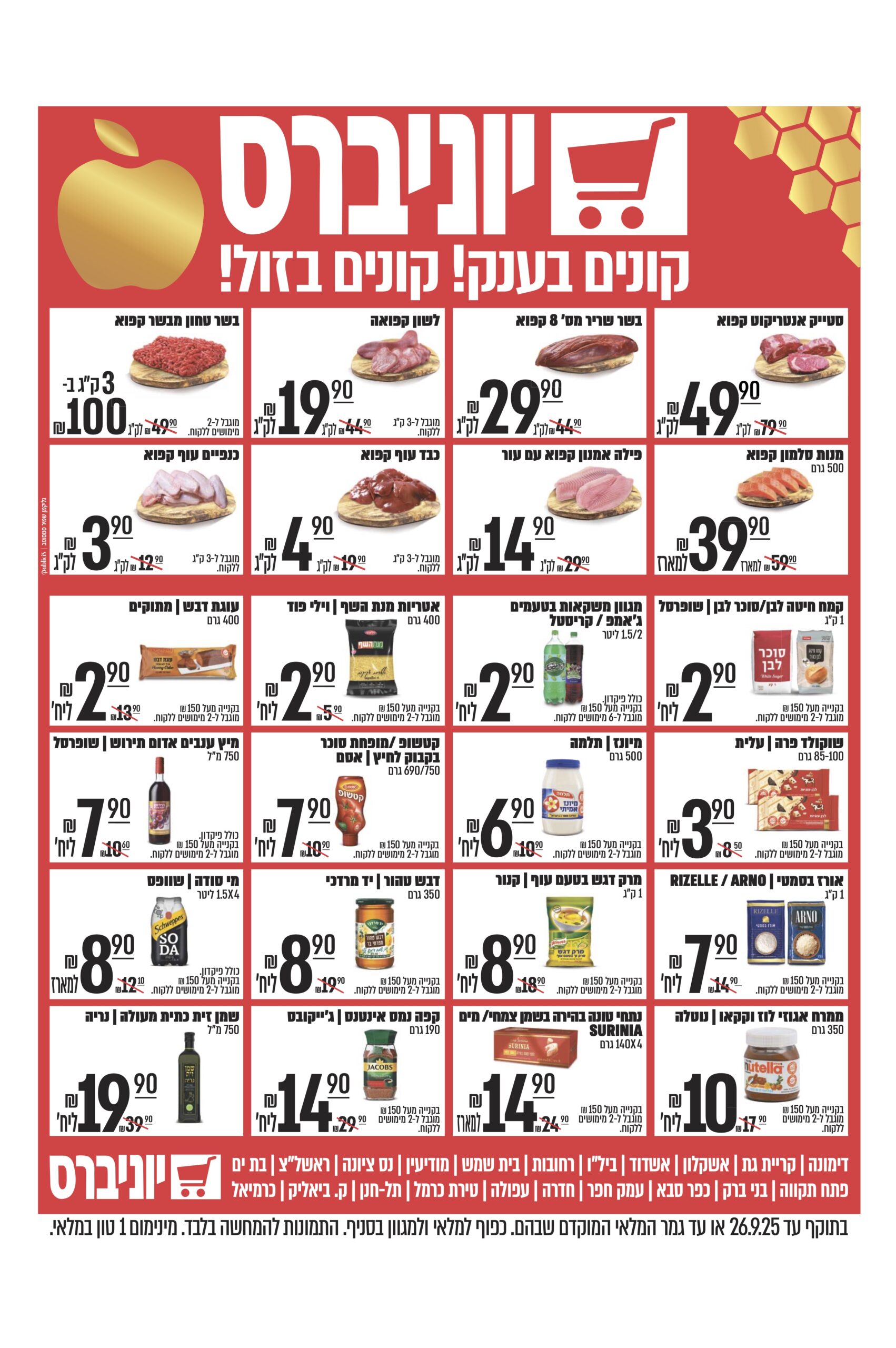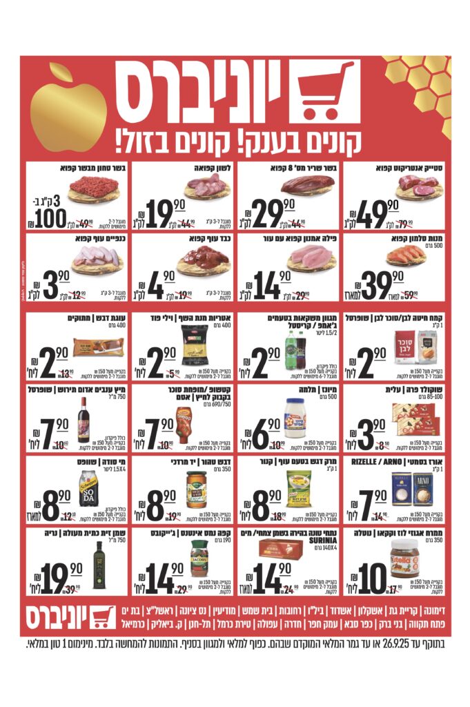 4 ביולי 202514 בספטמבר 2025 מנהל אתר מבצעים ביוניברס. רשת מבית שופרסל.בתוקף עד 26.9.25 או עד גמר המלאי המוקדם שבהם.מתוך פרסום בעיתונות. ט.ל.ח. המבצעים באחריות שופרסל ובהתאם לתנאים המפורטים בפרסום ובאתר שופרסל.לחיצה לשיתוף בפייסבוק (נפתח בחלון חדש)Click to share on Twitter (נפתח בחלון חדש)לחיצה לשיתוף ב-WhatsApp (נפתח בחלון חדש)