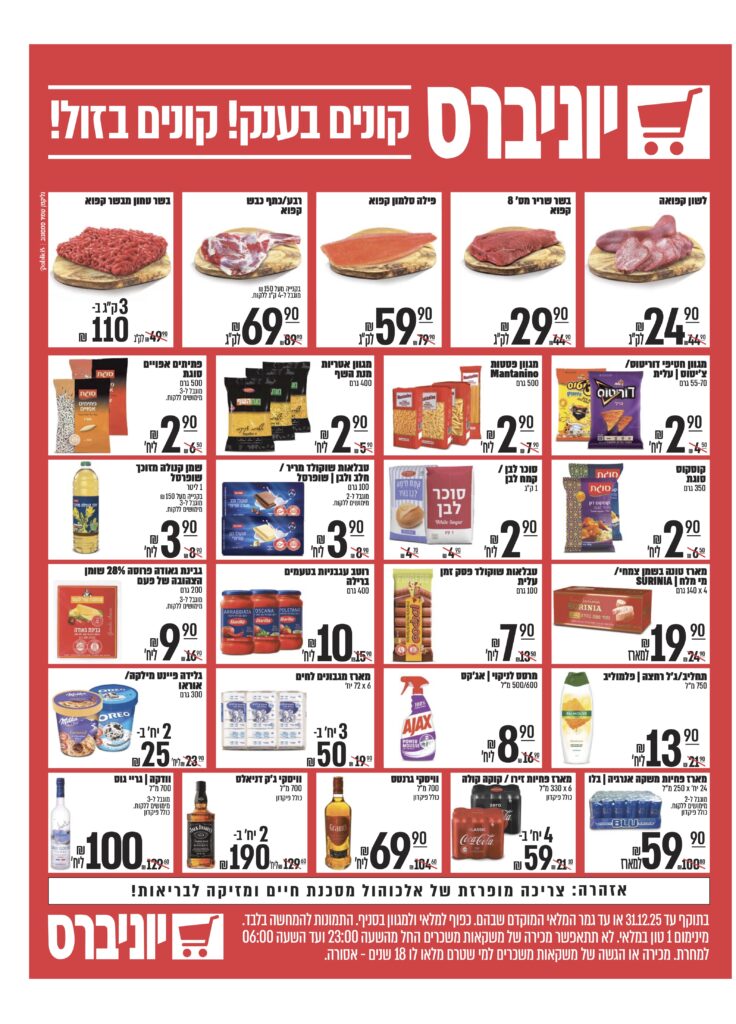 4 ביולי 20256 בדצמבר 2025 מנהל אתר מבצעים ביוניברס. רשת מבית שופרסל.בתוקף עד 31.12.25 או עד גמר המלאי המוקדם שבהם.מתוך פרסום בעיתונות. ט.ל.ח. המבצעים באחריות שופרסל ובהתאם לתנאים המפורטים בפרסום ובאתר שופרסל.לחיצה לשיתוף בפייסבוק (נפתח בחלון חדש)Click to share on Twitter (נפתח בחלון חדש)לחיצה לשיתוף ב-WhatsApp (נפתח בחלון חדש)
