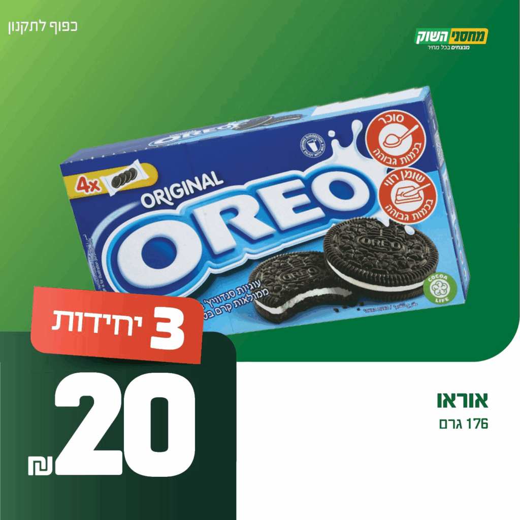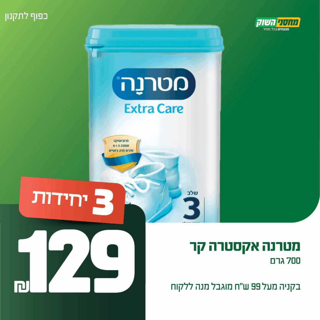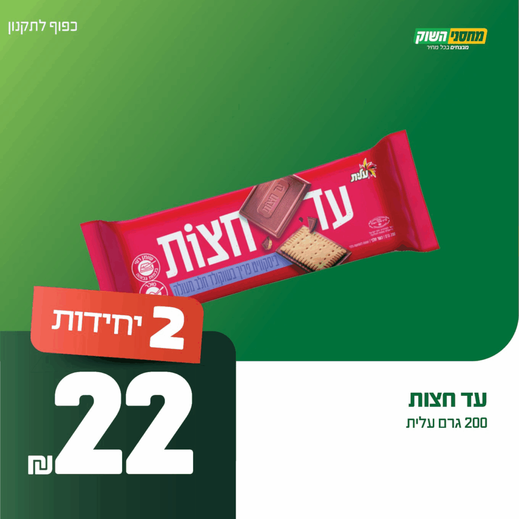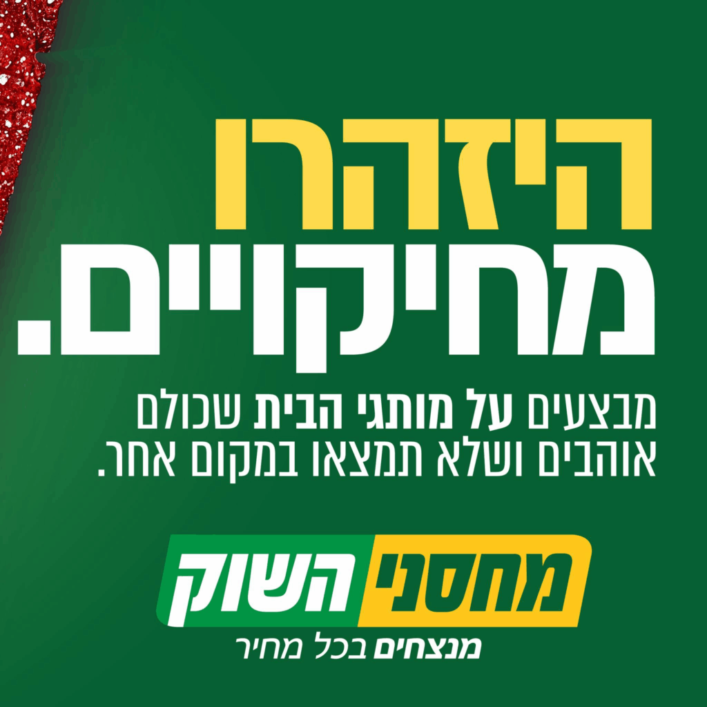 בתוקף בין התאריכים 15-31.10.2025 המוקדם מבניהם | בקנייה מעל 100₪ לא כולל הפריטים שבמבצע | מוגבל מנה / 2 יחידות / 2 ק"ג ללקוח | המבצעים בכפוף לתקנון >> https://lp6.me/LZljm