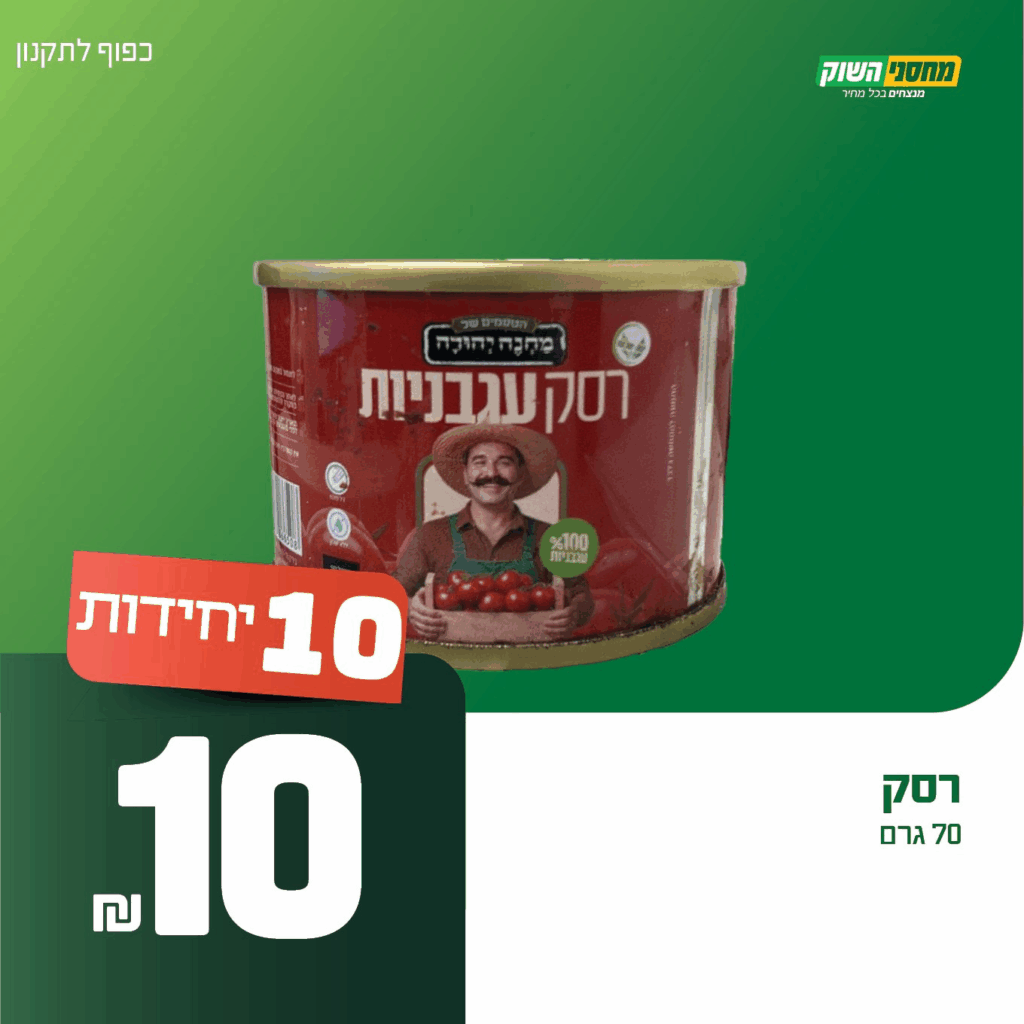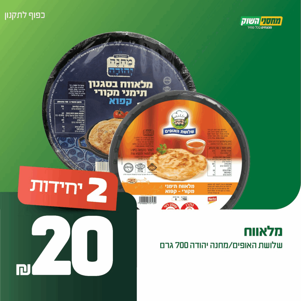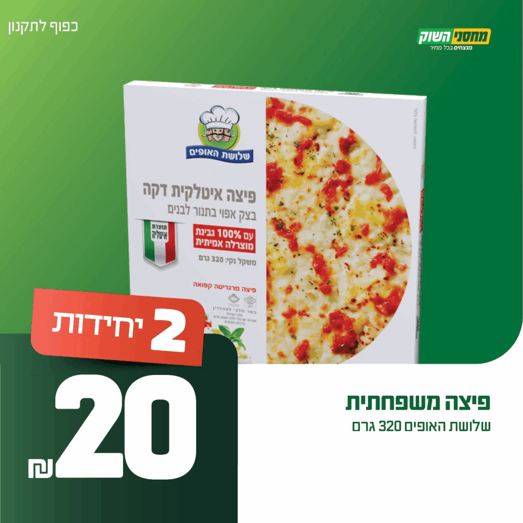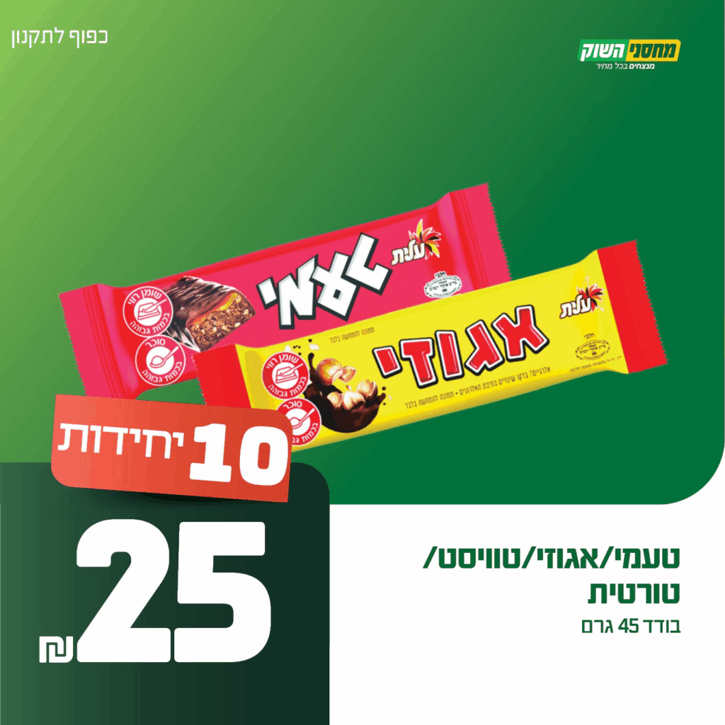 בתוקף בין התאריכים 15-31.10.2025 המוקדם מבניהם | בקנייה מעל 100₪ לא כולל הפריטים שבמבצע | מוגבל מנה / 2 יחידות / 2 ק"ג ללקוח | המבצעים בכפוף לתקנון >> https://lp6.me/LZljm