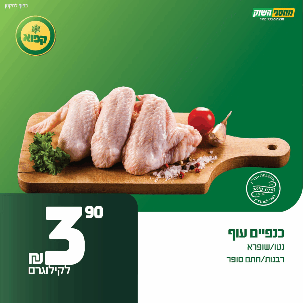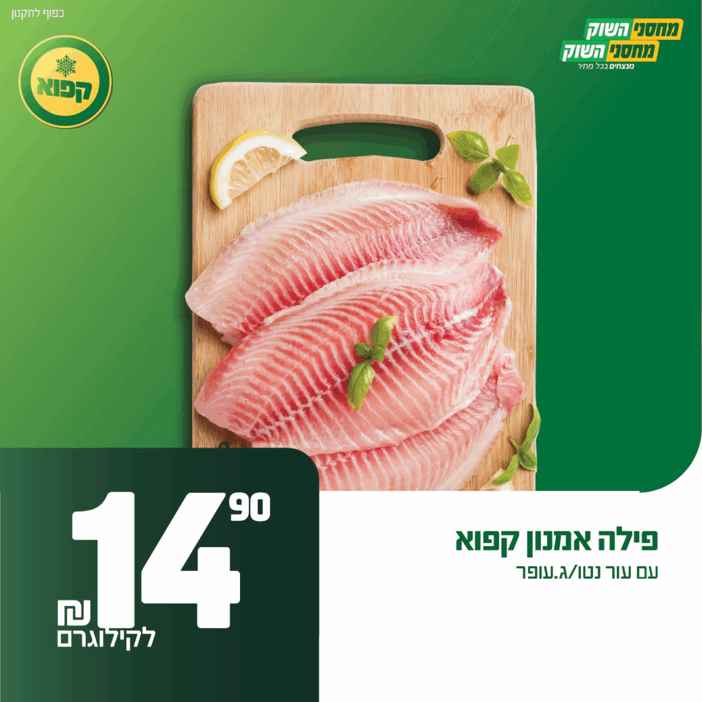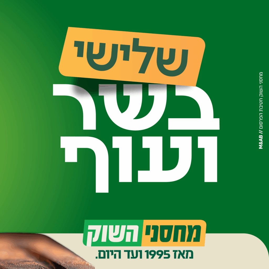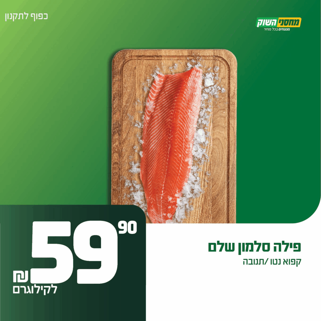 בתוקף ל-28.10.2025 בלבד | בקניה מעל 100₪ לא כולל הפריטים שבמבצע | מוגבל 2/3 מנות / יחידות / 3 ק"ג ללקוח | מבצעי הדגים הטריים חלים רק בסניפים בהם קיימות מחלקות דגים טריות | לתקנון המבצע >> https://lp6.me/AVx9Z