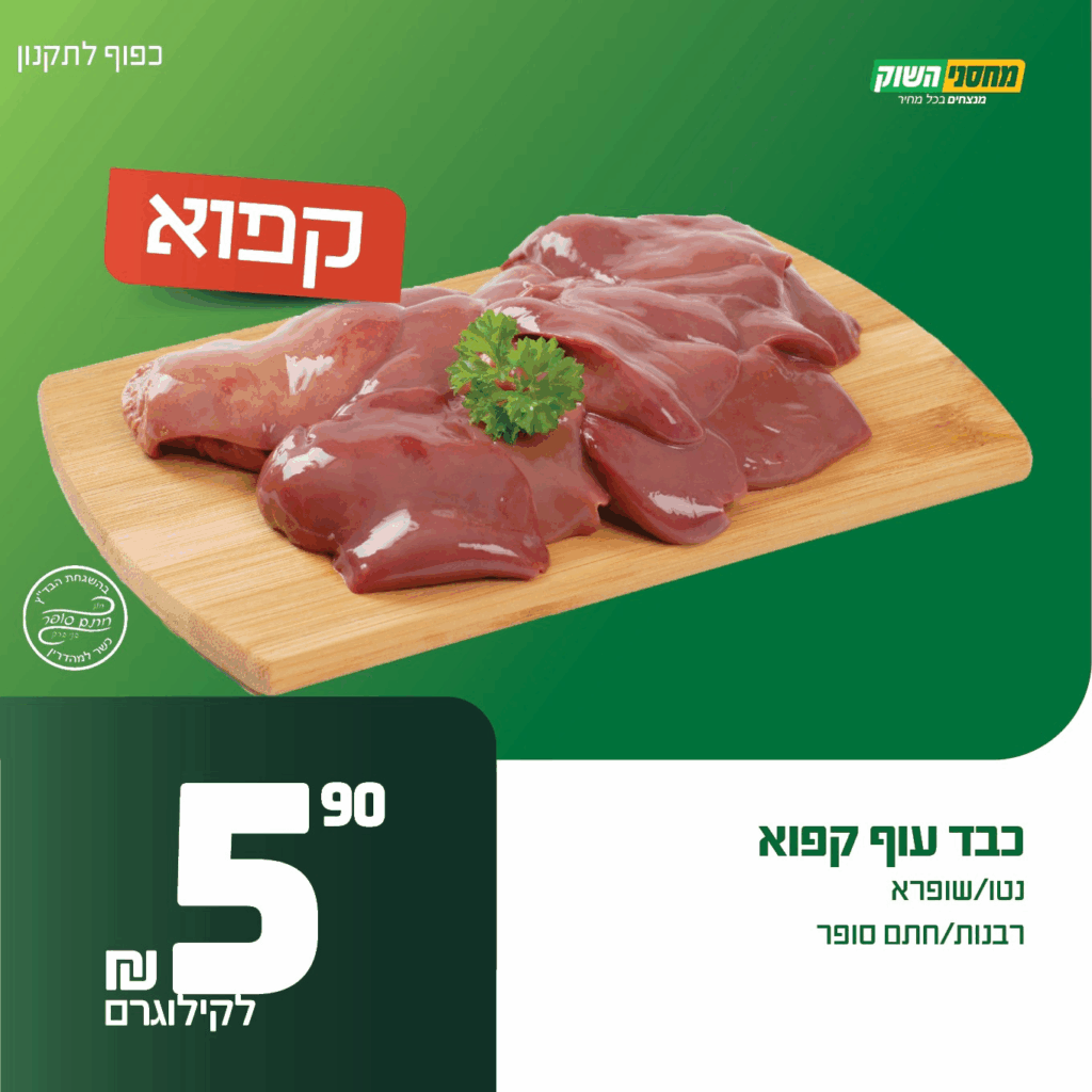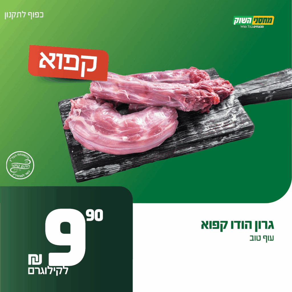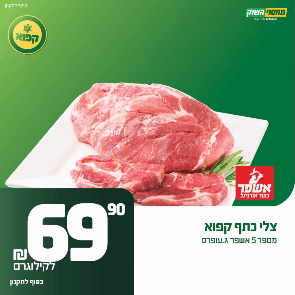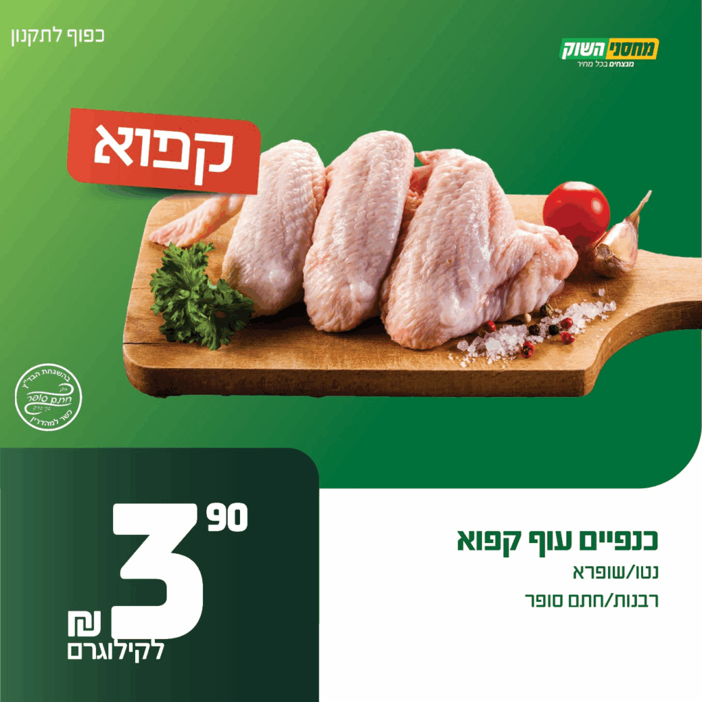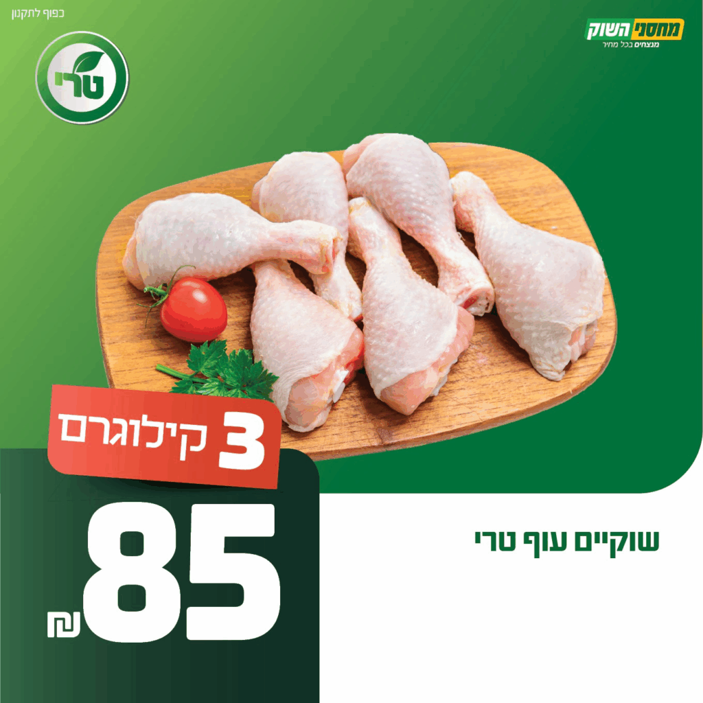 בתוקף ל-28.10.2025 בלבד | בקניה מעל 100₪ לא כולל הפריטים שבמבצע | מוגבל 2/3 מנות / יחידות / 3 ק"ג ללקוח | מבצעי הדגים הטריים חלים רק בסניפים בהם קיימות מחלקות דגים טריות | לתקנון המבצע >> https://lp6.me/AVx9Z