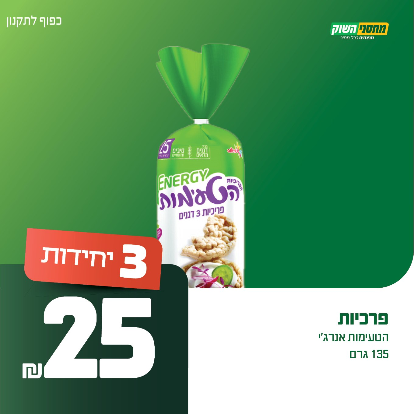 בתוקף בין התאריכים 15-31.10.2025 המוקדם מבניהם | בקנייה מעל 100₪ לא כולל הפריטים שבמבצע | מוגבל מנה / 2 יחידות / 2 ק"ג ללקוח | המבצעים בכפוף לתקנון >> https://lp6.me/LZljm