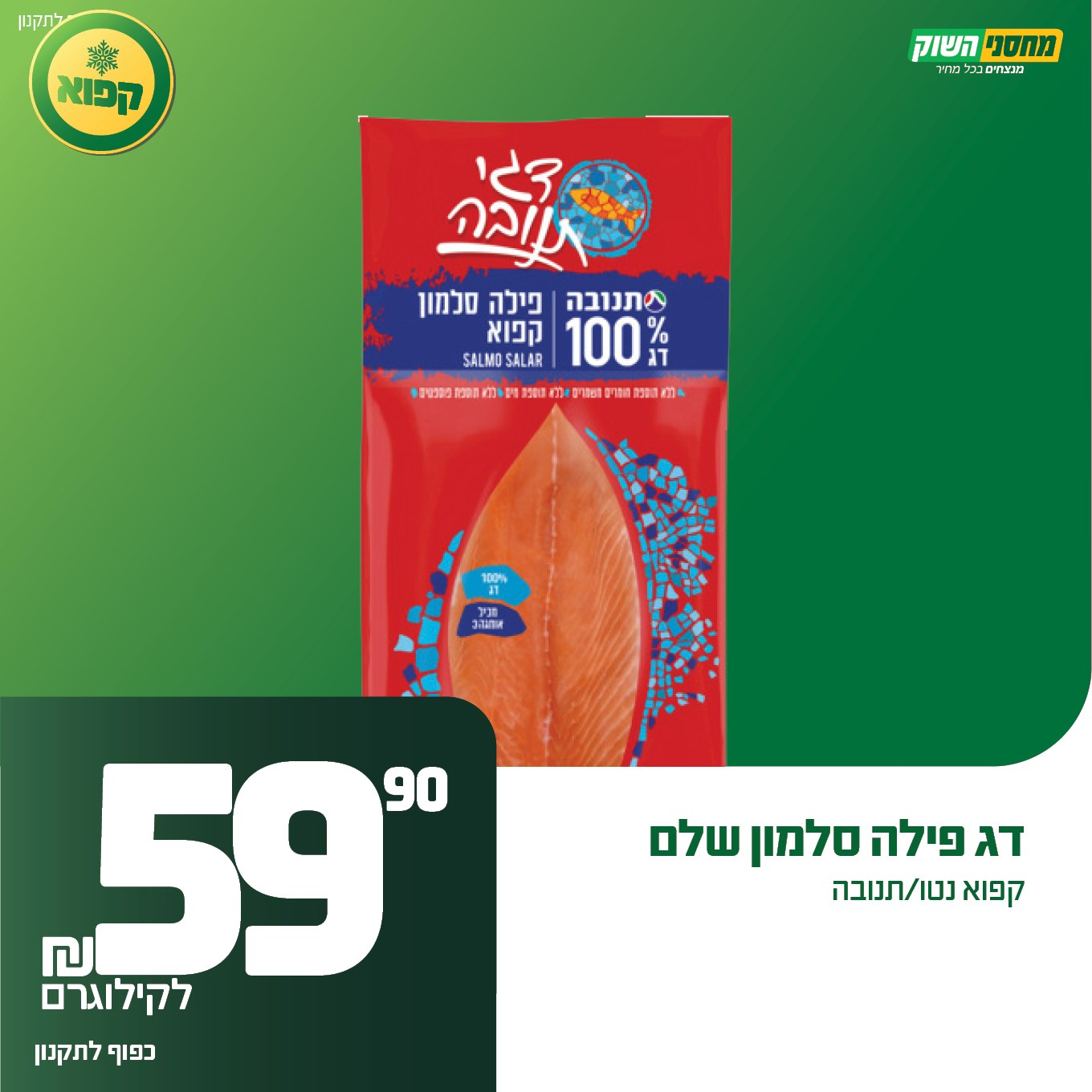 בתוקף ל-28.10.2025 בלבד | בקניה מעל 100₪ לא כולל הפריטים שבמבצע | מוגבל 2/3 מנות / יחידות / 3 ק"ג ללקוח | מבצעי הדגים הטריים חלים רק בסניפים בהם קיימות מחלקות דגים טריות | לתקנון המבצע >> https://lp6.me/AVx9Z