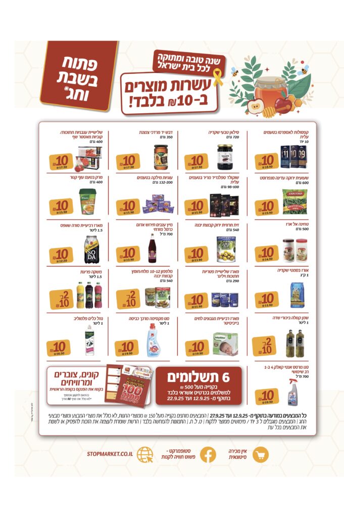 סטופ מרקט מבצעים מנהל אתר 2 חודשים ago מבצעים בסטופ מרקטבתוקף עד 27.9.25. באחריות סטופ מרקט בלבד. ט.ל.ח. מתוך פרסום בעיתונות
